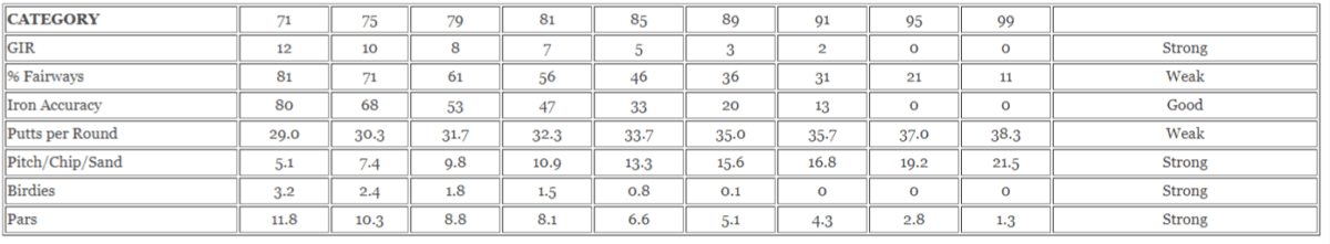 Study this chart and use it as a motivational tool to help you improve your golf statistics and become an above average golfer.